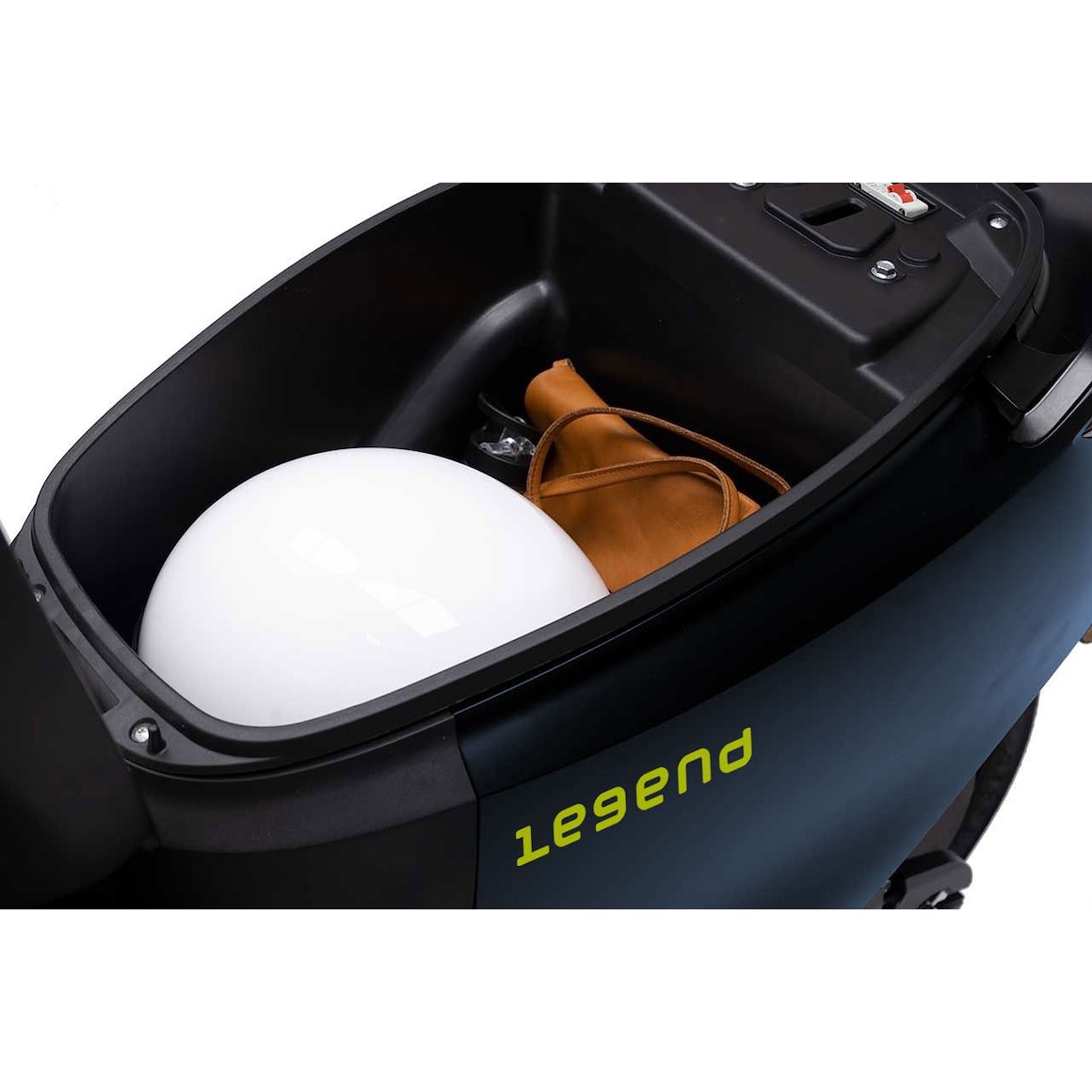 Sadelutrymmet är mycket väl tilltaget och rymmer med enkelhet stor mopedhjälm, samtidigt som du får plats med lås och annat man vill ha med sig.