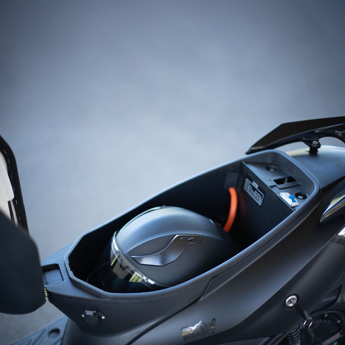 En kraftig men lätt sving i aluminium håller motorn på plats för att fördela vikten och ge optimala köregenskaper. Till skillnad från de flesta elmopeder har den här ett väl tilltaget förvaringsutrymme under sadeln som slukar allt ifrån lås till hjälm.